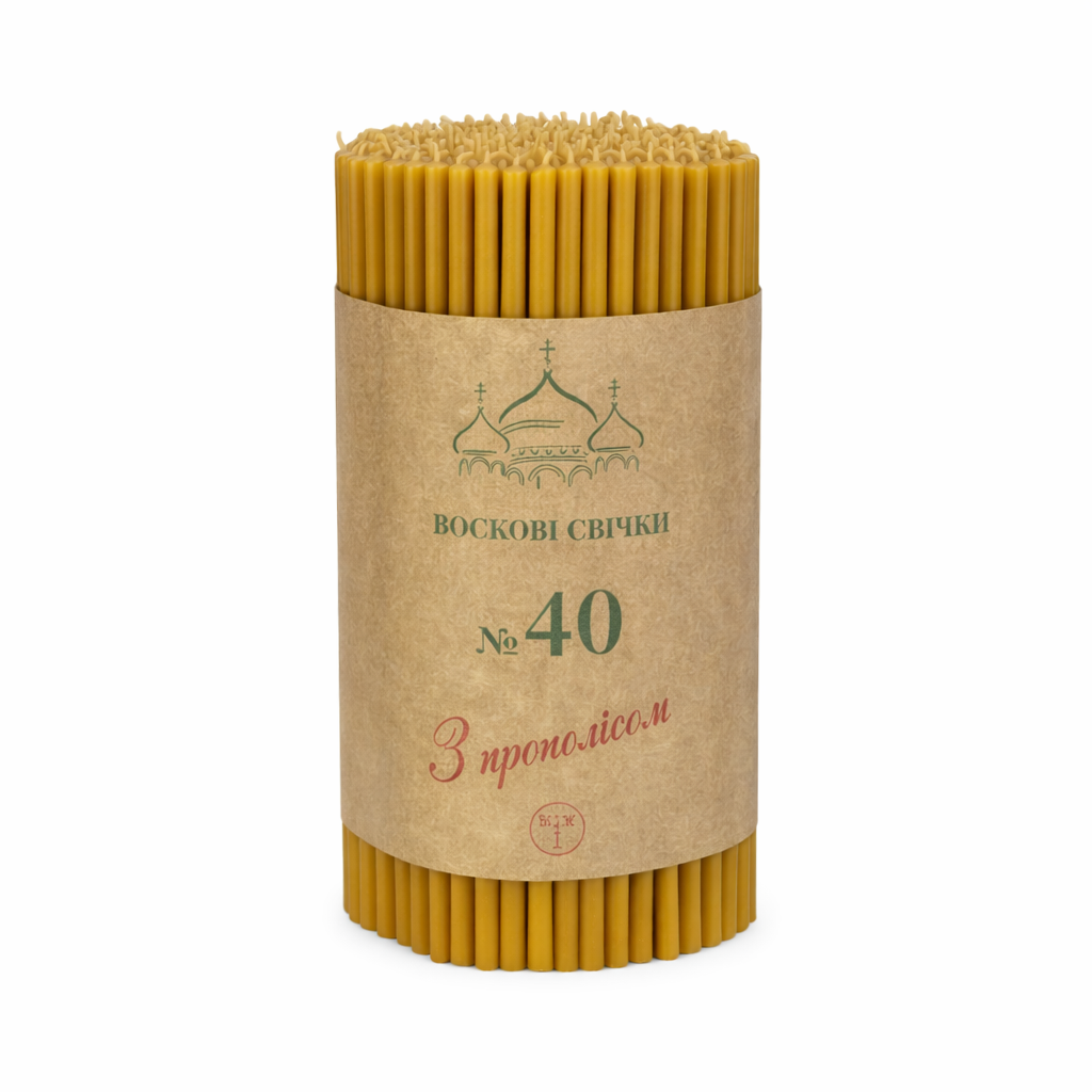 🐝 Натуральні воскові свічки №40 з додаванням бджолиного прополісу та гнітом зі 100% бавовни горять рівно й чисто, без кіптяви. Вони наповнюють простір делікатним ароматом різнотрав’я, що поступово переходить у теплі, заспокійливі ноти натурального воску та меду.