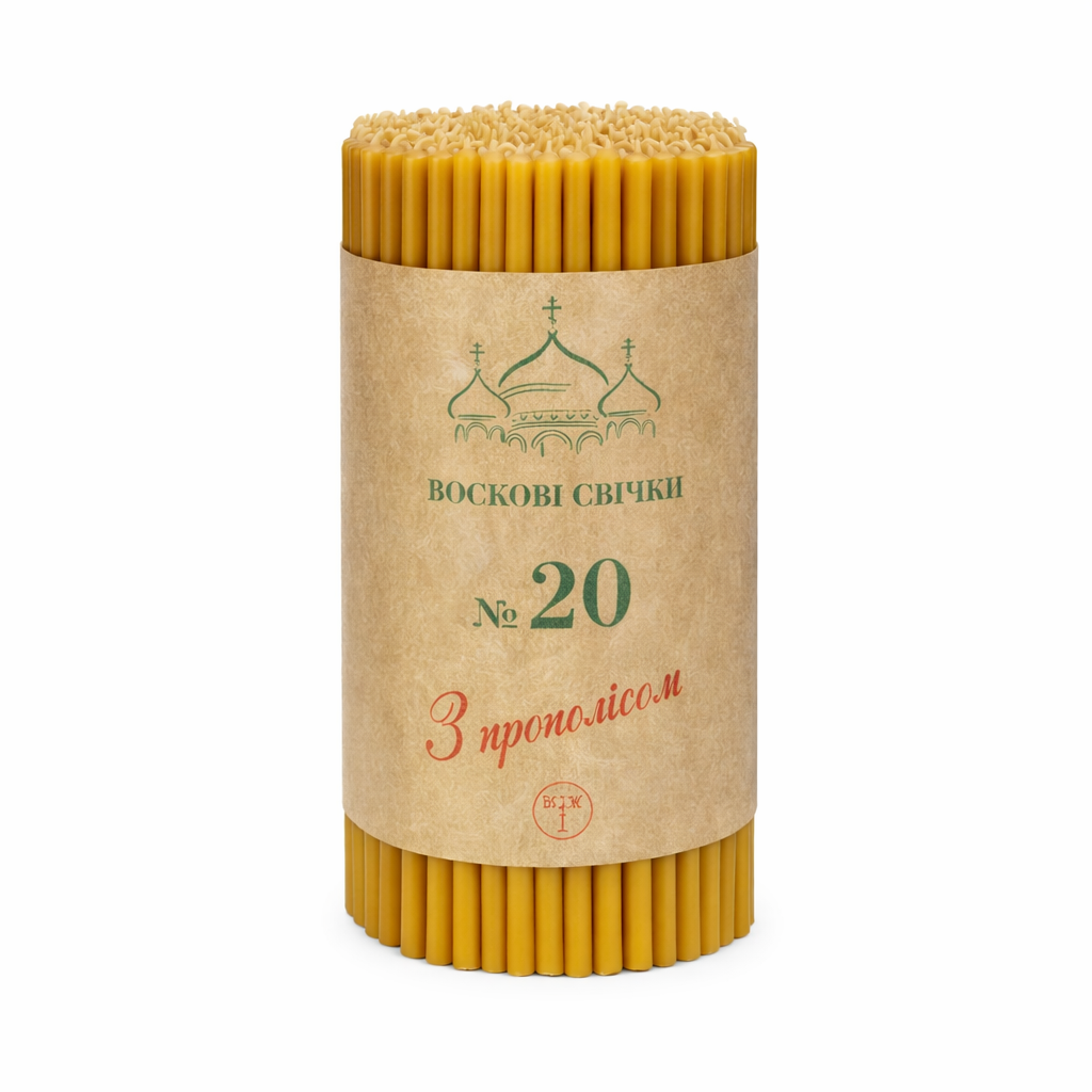 🐝 Натуральні воскові свічки №20 з додаванням бджолиного прополісу та гнітом зі 100% бавовни горять рівно й чисто, без кіптяви. Вони наповнюють простір делікатним ароматом різнотрав’я, що поступово переходить у теплі, заспокійливі ноти натурального воску та меду.