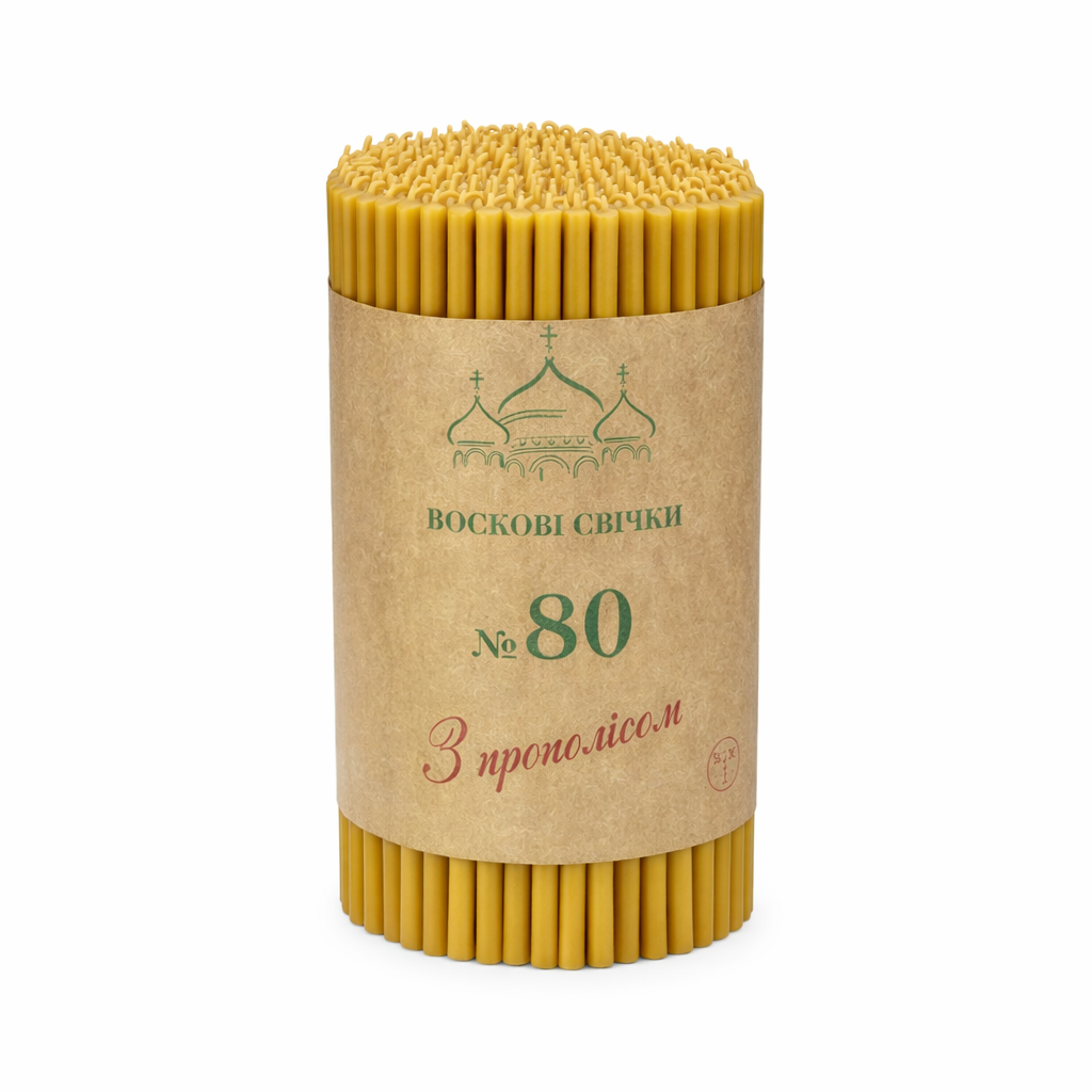 🐝 Натуральні воскові свічки №80 з додаванням бджолиного прополісу та гнітом зі 100% бавовни горять рівно й чисто, без кіптяви. Вони наповнюють простір делікатним ароматом різнотрав’я, що поступово переходить у теплі, заспокійливі ноти натурального воску та меду.