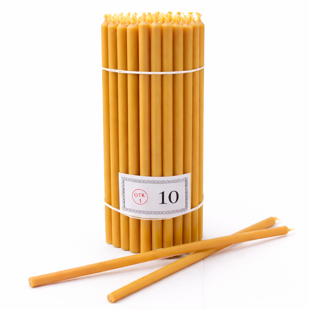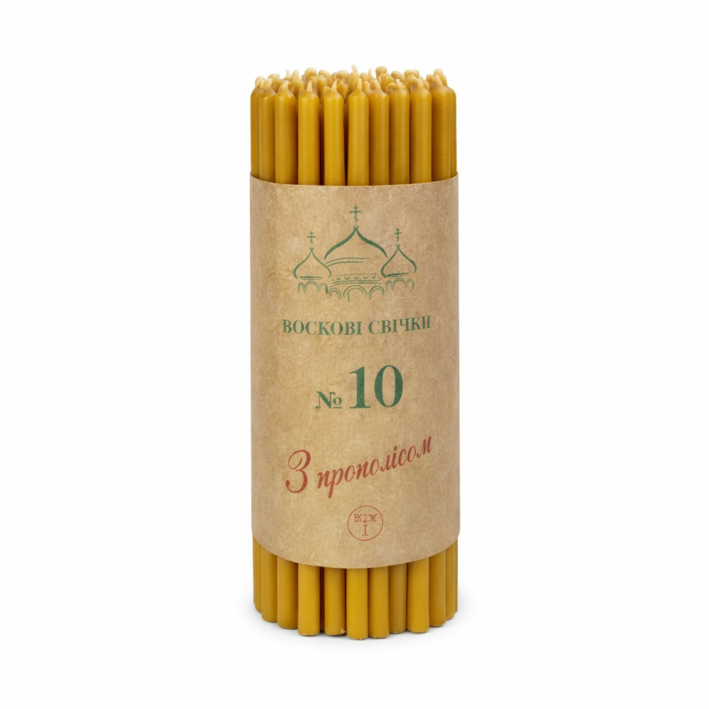 🐝 Натуральні воскові свічки №10 з додаванням бджолиного прополісу та гнітом зі 100% бавовни горять рівно й чисто, без кіптяви. Вони наповнюють простір делікатним ароматом різнотрав’я, що поступово переходить у теплі, заспокійливі ноти натурального воску та меду.