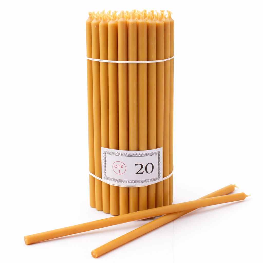 🐝 Натуральні воскові свічки №20 з додаванням бджолиного прополісу та гнітом зі 100% бавовни горять рівно й чисто, без кіптяви. Вони наповнюють простір делікатним ароматом різнотрав’я, що поступово переходить у теплі, заспокійливі ноти натурального воску та меду.