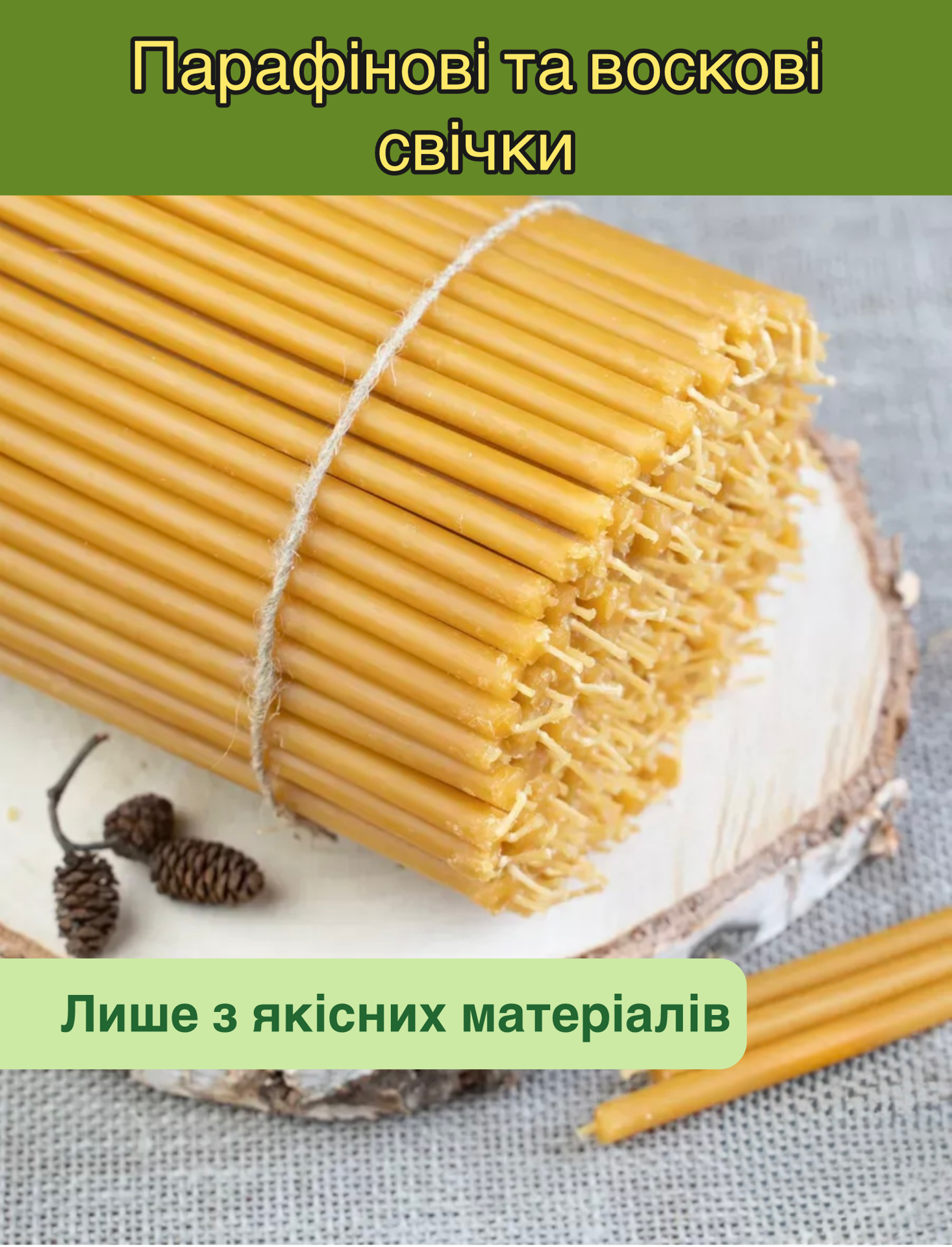 🕯️ Парафінові свічки №100 виготовляються з якісної сировини на сучасному обладнанні, тому зберігають міцну форму та горять стабільно й передбачувано. Вони не мають запаху, не кришаться й не утворюють потьоків, поступово випаровуючись і даруючи довгий, рівний вогонь - чистий і спокійний у кожну мить горіння.